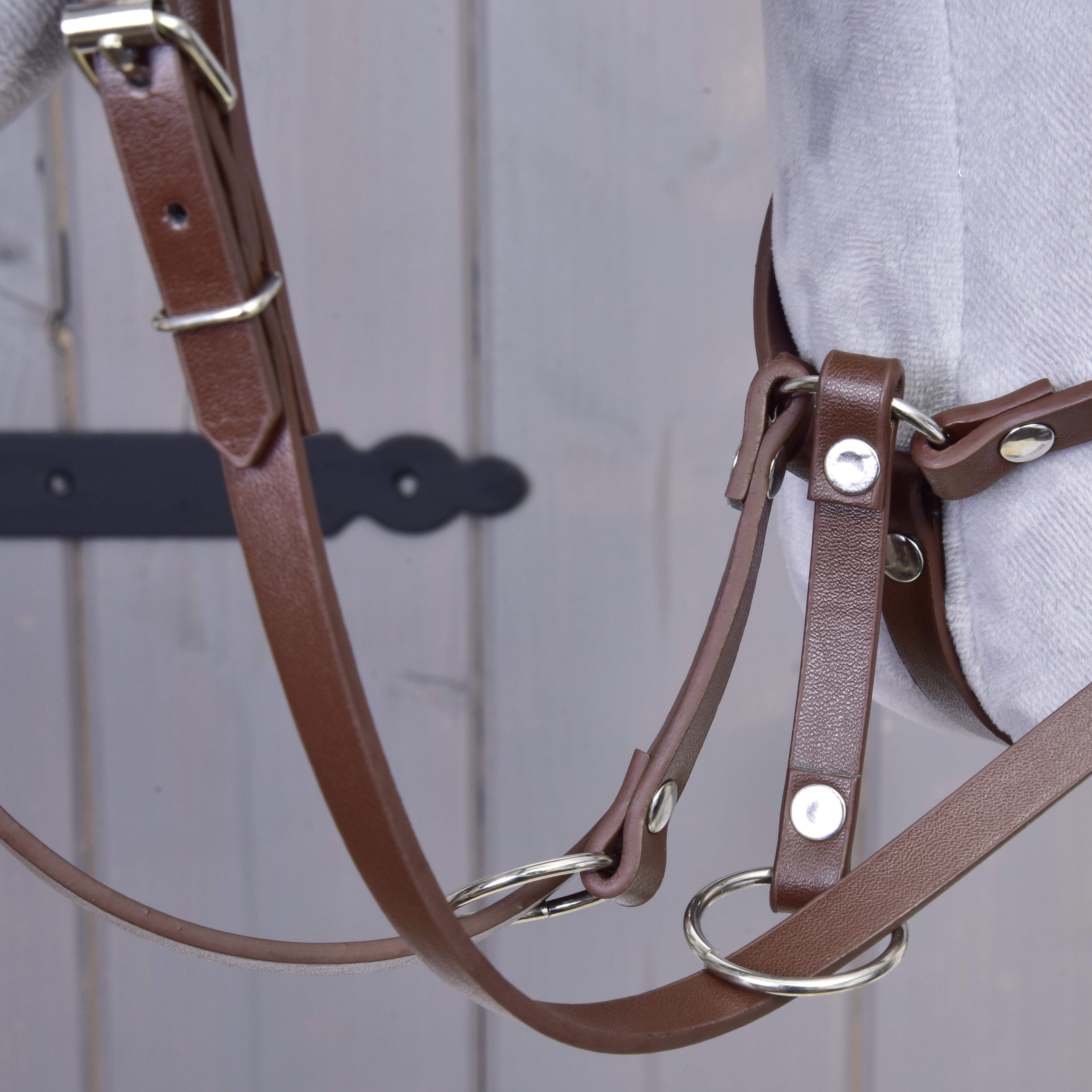 Beautiful bridle set for your hobby horse used to control the horse with bit and reins