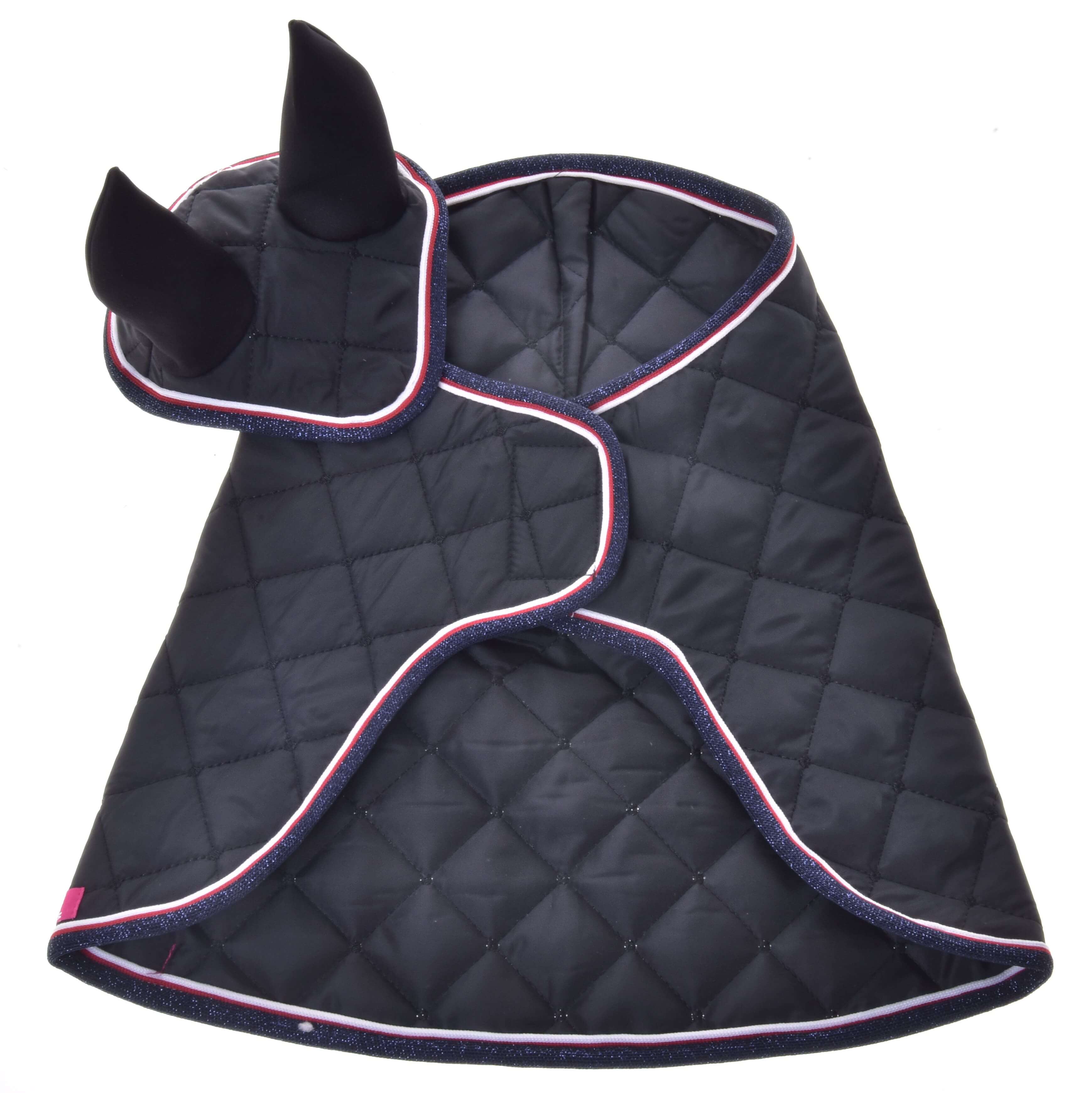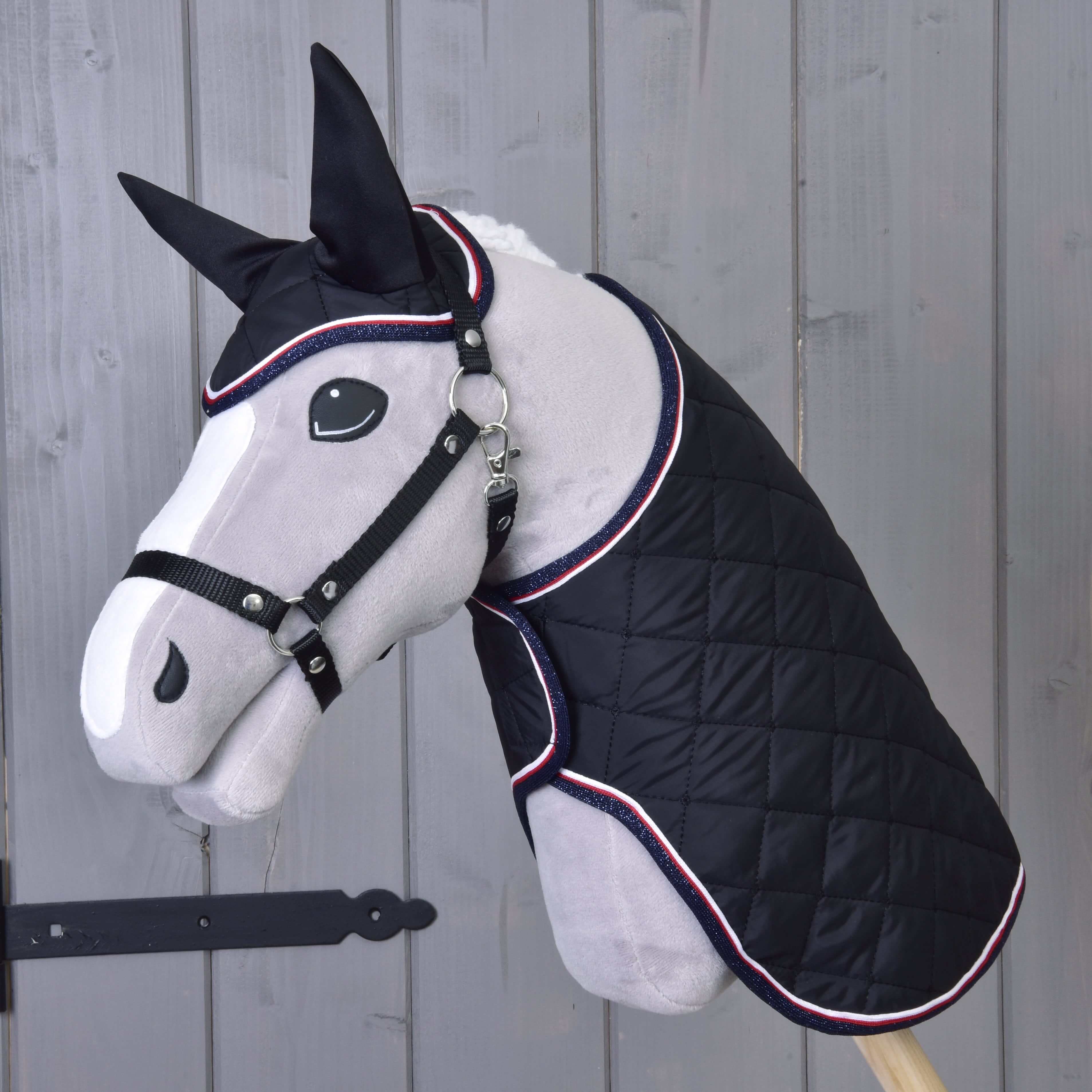 Beautiful blanket and ear bonnet set for your Hobby Horse that not only serves as a decoration for your horse, but also keeps him warm and protects him from pesky insects